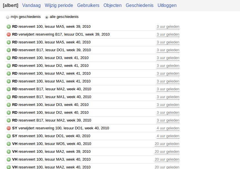 Los conflicten en onzekerheden op met de Geschiedenis functie. U ziet precies welke lokalen door wie en wanneer zijn gereserveerd.