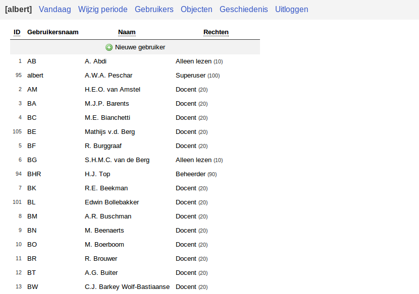 Met het gebruikersbeheer kunt u medewerkers in verschillende groepen indelen. Bepaalde docenten krijgen altijd voorrang, of kunnen reserveringen van anderen verwijderen. Sommige medewerkers mogen alleen reserveringen bekijken, niet wijzigen.