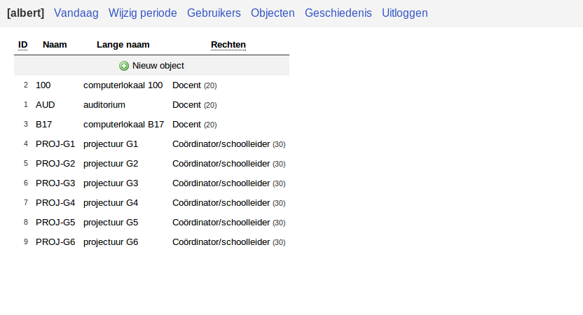 Dat maakt niet uit, want met het objectenbeheer kunt u op elk moment lokalen toevoegen en verwijderen. U kunt zelfs aangeven welke lesuren op welke dagen in een bepaald lokaal reserveerd kunnen worden, en door wie.